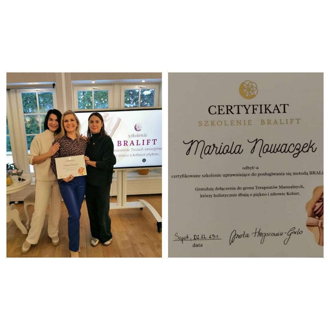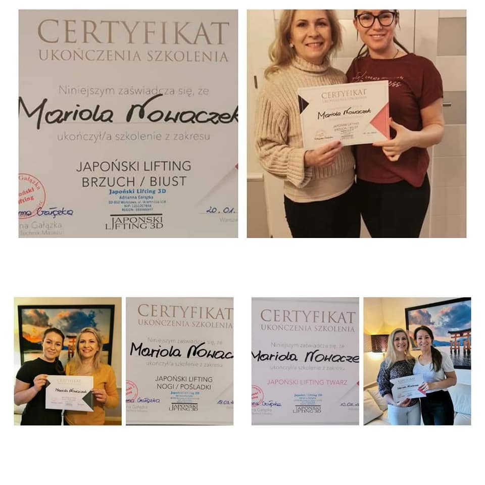 O mnie Witaj, Nazywam się Mariola Nowaczek, kosmetyka jest moją pasją. Prowadzę dla Was studio urody La Marioll od 2016 roku. Certyfikaty i szkolenia Japoński lifting brzucha i biustuSzkolenie – stawy skroniowo – żuchwowe – diagnostyka i leczenieSzkolenie BraliftOsteopatia estetyczna twarzyBeauty forum&hairSzkolenie Zoga Face integrationNatural face liftingSkeyndor – new eternalMaderoterapia – kolumbijski masaż antycelulitowyBelViso – masaż lifting twarzyqrf Wydarzenia i eventy Japoński masaż odmładzający Event z marką Skeyndor Event z marką Arosha